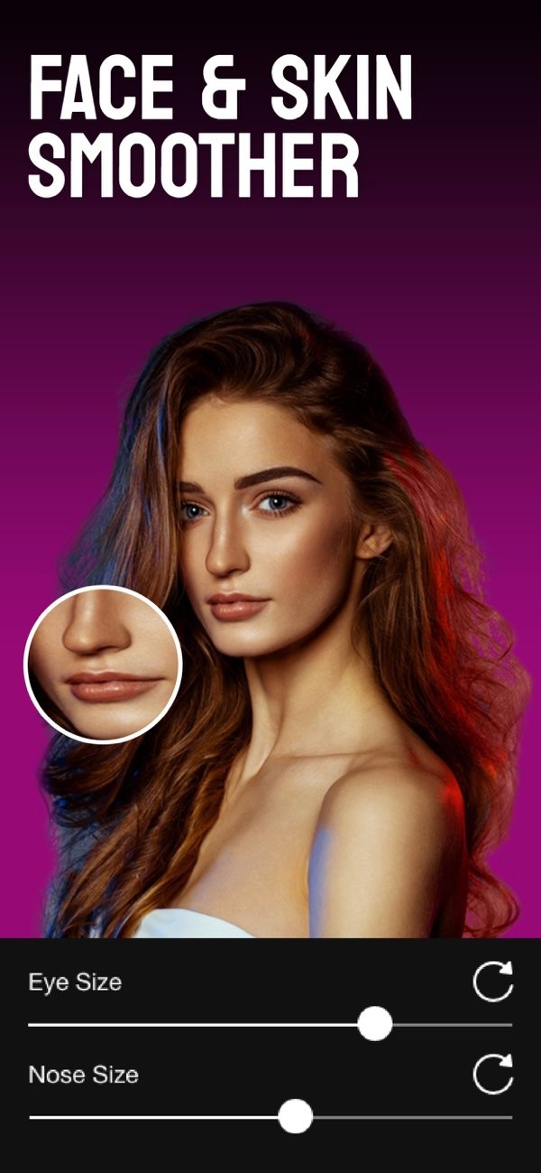 To make your face look slimmer in photos, use a face slimmer app like Selfie Editor. It includes tools that adjust facial contours and improve features in a natural-looking way.