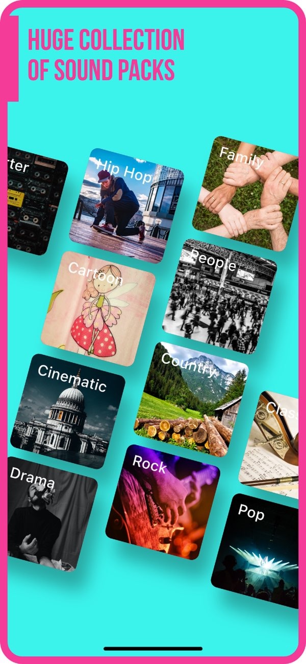 • Users can pick from many sound packs and photo filters.
