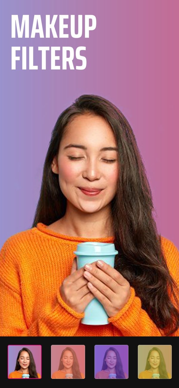 Makeup filters with various color options displayed.